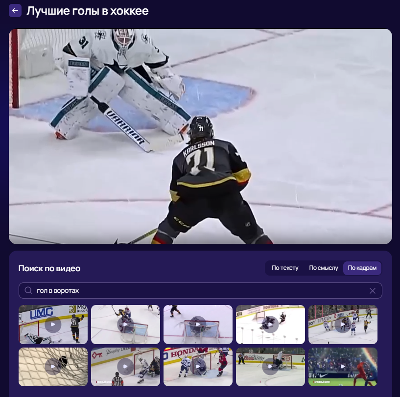 Кроме этого, система ищет и по кадрам, что позволяет легко ориентироваться не только по сказанному, но и по видеоряду.
